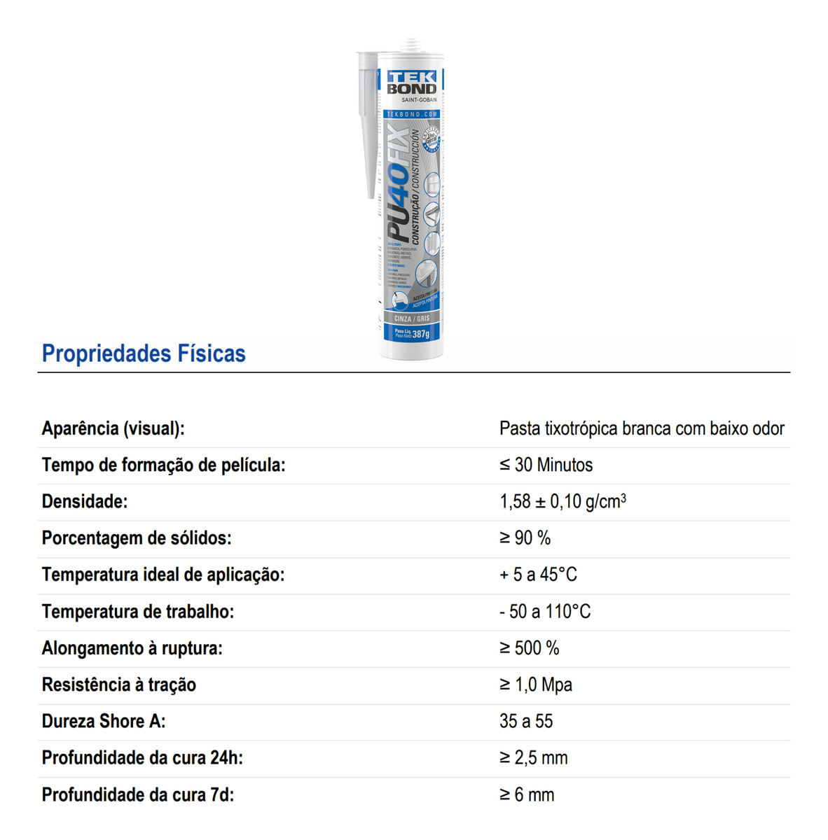 O Tekbond Silicone PU40 Cinza é a solução ideal para quem busca um selante versátil e de alta performance. Com um volume de 280 mL e peso de 387 g, este cartucho é perfeito para aplicações em diversas superfícies, como cerâmica, porcelana, madeira, metais, cimento, vidro e mármore. Sua formulação é especialmente projetada para ambientes externos, garantindo durabilidade e resistência.