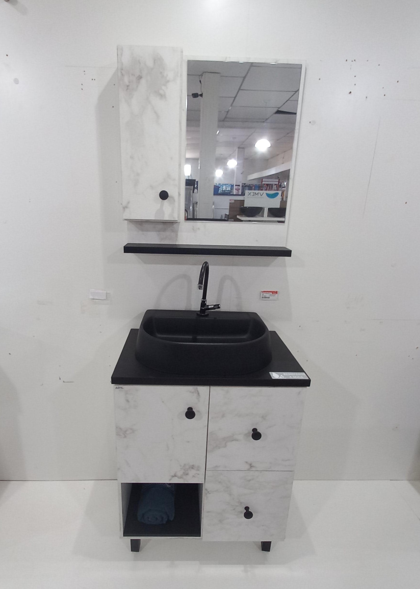 Com o Balcão São João Évora 0.65 - Amarmo com Preto, seu banheiro ganhará um toque de sofisticação e praticidade, tornando o dia a dia mais eficiente e elegante.