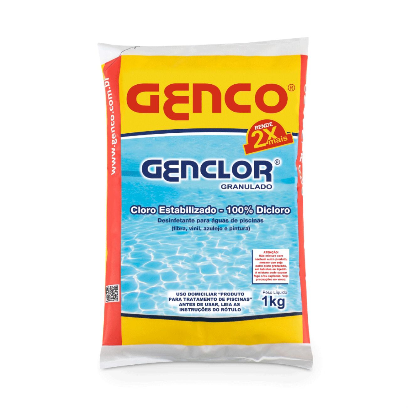 - 1) Adicionar diariamente de 2 a 3 g /m3 (3 gramas por 1.000 litros de água) de genclor. Espalhar diretamente sobre a água. Em piscinas de fibra, vinil ou pintadas, dissolver a dosagem indicada previamente em um recipiente plástico com água da própria piscina e utilizar apenas a solução sobrenadante; repetir essa operação até que toda a dosagem do produto tenha sido pré-dissolvida; não utilizar os grânulos restantes se não estiverem totalmente dissolvidos.