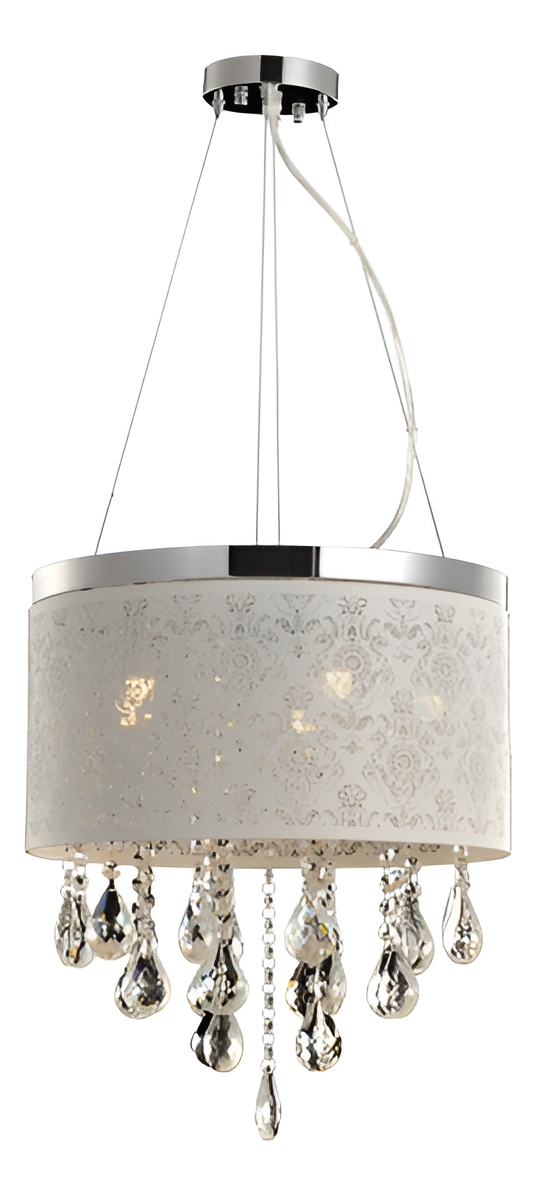 O clássico e o moderno nunca estiveram tão próximos. Com design diferenciado e o propósito de trazer elegância e refinamento ao seu ambiente, o lustre Duquesa é a fusão perfeita entre os dois estilos. Indicação de uso: Lojas, Boutiques, Restaurantes, Hotéis, Salões de Beleza, Sala de Estar e Sala de Jantar. - Dimensões A: 400 mm B: 145 mm - Peso: 3350g - Base: G9 - otência: 5 x 15w - Quantidade de Lâmpadas: 5 Uni CARACTERÍSTICAS › - Cúpula em aço nas cores: branco fosco - Pingentes em acrílico - Lâmpada indicada: Luxpin G9 - Marca: Avant - - Ref: 340115826