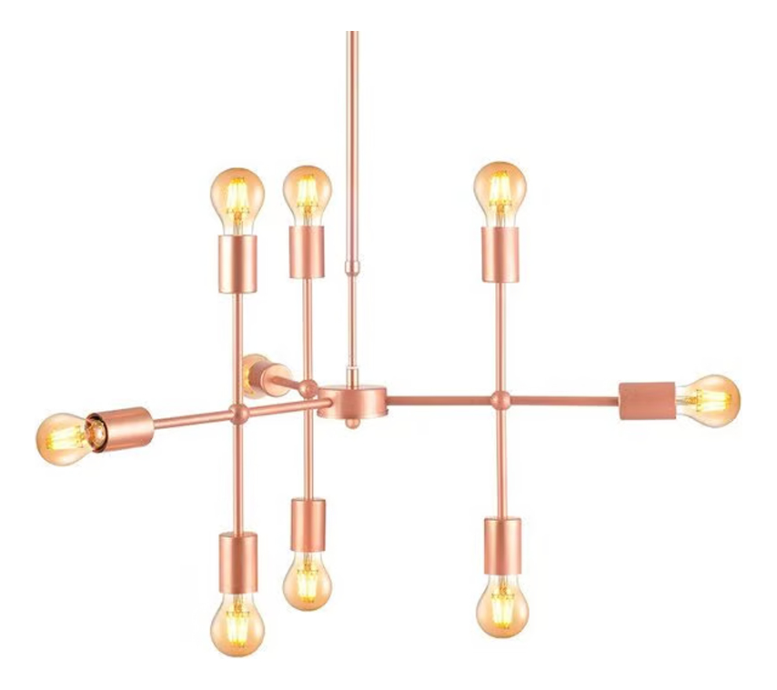 O modelo 489420009 possui capacidade para 9 lâmpadas com soquete E27, permitindo a personalização da iluminação conforme suas necessidades. Com uma potência de 40W, é compatível com lâmpadas LED e LED retrô, garantindo eficiência energética e durabilidade. A altura de 39 cm proporciona um impacto visual sem sobrecarregar o ambiente.